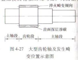 分析認為,大齒輪軸熱處理特點是在高溫長時間滲碳、高溫回火和淬火、回火中,由于工件重達4 -5t,加熱和冷卻時間均臶K.速度慢,淬火時齒部全齒淬透,其余部位淬硬層深為15 -20mm,工件畸變主要產(chǎn)生于淬火加熱和冷卻過程,淬火冷卻中工件產(chǎn)生的熱應力和組織應力疊加使齒輪軸出現(xiàn)畸變。為防止和減小工件畸變,在保證工件要求硬化層深度的條件下宜采取最小淬火溫差,取淬火溫度的條件下宜采取最小淬火溫差,取淬火溫度 下限。另外,采用等溫淬火處理減少和控制工件畸變,使工件滿足技術(shù)性能(硬度、強度、耐磨性能)的同時,其畸變量最小。大齒輪軸熱處理工藝的改進及技術(shù)措施如下: