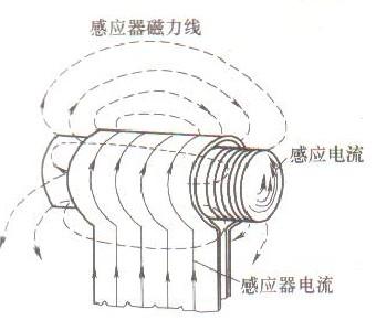 感應器是一個工作線圈,在交變電流通過線圈時,其導線周圍便產(chǎn)生交變磁場。處在磁場內(nèi)的金屬工件,因電磁感應產(chǎn)生了電動勢。當金屬工件具有完整的電路時,就有渦流產(chǎn)生。此渦流與線圈電流相平行,方向相反,如圖7-1所示。渦流 :使工件加熱,線圈此時有機械力作用在工 ,件上。從電路上講,感應器由串聯(lián)的電阻和電感組成,它必須與電源相匹配。表面淬火用感應器根據(jù)工件要求,能表回淬火用感應器根據(jù)工件要求,能過試驗與生產(chǎn)實踐,現(xiàn)在已有一些具體的設計原則,但仍以經(jīng)驗設計為主。計算機模擬已在一 些現(xiàn)代化感應加熱設備制造廠開始應用。